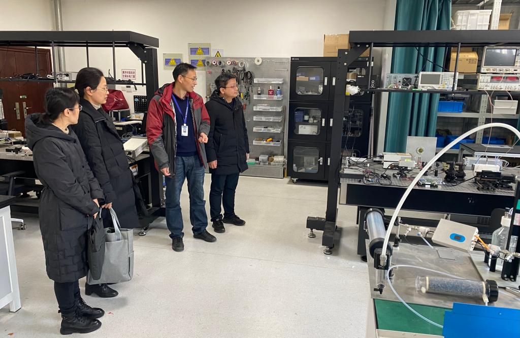 的基本情况及近年来的发展成果;徐亮和李学彬分别介绍了安徽光机所近年在气体红外光谱检测、大气物理探测等方向的研究进展。双方探讨了科学研究、研究生培养、本科生就业等方面的合作事宜,高娟表示本次交流为双方合作打下了基础,希望后续能进一步加强联系交流,在科研合作和人才培养等工作共同进步。会后,高娟一行在徐亮和李学彬陪同下,参观了激光与红外和大气光学应用研究室的科研实验室研究生工作室等。