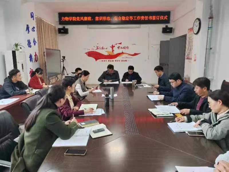 举行2024年度责任书签订仪式。会议由学院党委书记孙东升主持,学院党政领导班子成员和各室安全责任人、各党支部书记出席会议。
