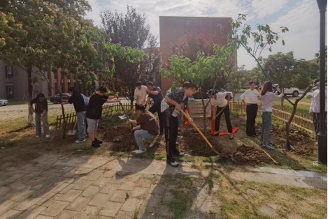 在院领导的带领下,大家纷纷挽起袖子挖坑、填土、浇水,毕业生们将对学校、学院、老师、同学的美好记忆和自己曾经努力拼搏流下的汗水化作一棵棵树苗栽种在母校的怀抱,以此纪念自己大学时光,也勉励自己在未来的道路上像小树一样向下扎根立足、向上茁壮成长。
