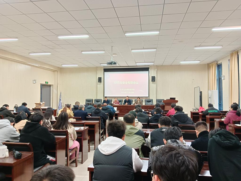 在明道楼一楼数大报告厅召开研究生安全工作专题会议,会议由常务副院长高娟主持,学院领导班子成员、研究生导师、研究生辅导员及全体研究生参加会议。