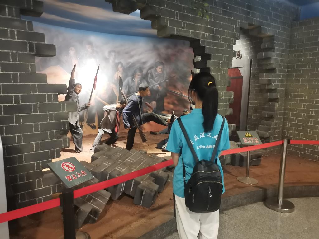 在长达28年的革命斗争中,大别山军民浴血奋战,为中国革命的胜利和新中国的诞生建立了伟大功勋,作出了巨大牺牲。从这里,走出了3支主力红军、349位开国将军。这里山山埋忠骨、岭岭铸忠魂,被誉为“红军的摇篮”和“将军的故乡”。三下乡的第一站,团队便来到了六霍起义纪念馆,师生们认真听取了讲解员关于革命历史的介绍,参观了先烈们留下来的历史实物、珍贵图片和大量的文献资料。一张张精彩图片,一个个英雄故事,一个个镌刻在墙壁的革命先烈名字,不时让全体师生驻足观看、深情追思。
