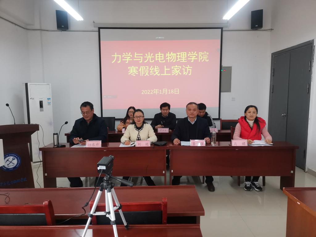 在学院楼报告厅开展2022年寒假集中家访活动。学院党委书记刘艳、副院长(主持工作)圣宗强、副院长高娟、系主任、全体本科生辅导员、学生资助宣传大使以及部分学生家长近150人参加了线上家访会。会议由党委副书记孙东升主持。
