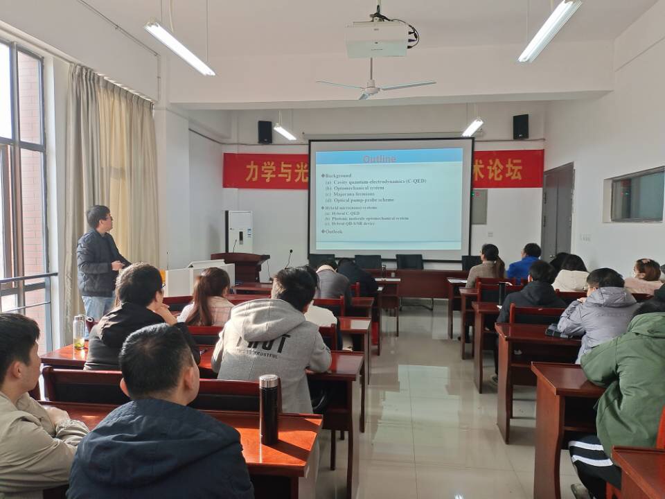 光电物理系陈华俊副教授在院报告厅为全院光电专业研究生做了题为《复合微纳系统中光学传输特性的量子调控研究》的学术报告。全体研究生及青年教师100余人参加了报告会。